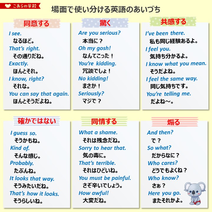 こあたん こあらの学校 در توییتر 場面で使い分ける英語のあいづち